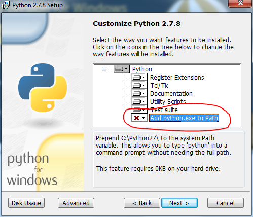 Eller du kan kan legge til Python i PATH så det holder å skrive bare "python". Dette kan du enten velge som et alternativ når du installerer, eller du kan sette den manuelt via cmd eller kontrollpanel.